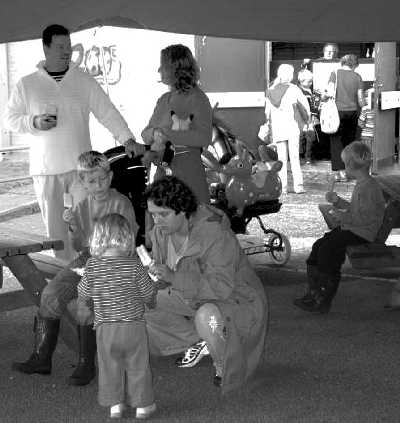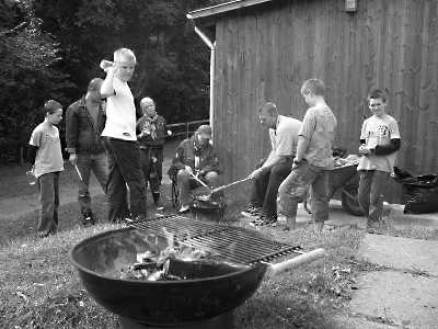 Klaus hold om torsdagen sprudler også af aktivitet. De ca. 25 børn er lige så fulde af energi som de plejer at være. Niels, Morten, Tobias og Lasse hjælper.
