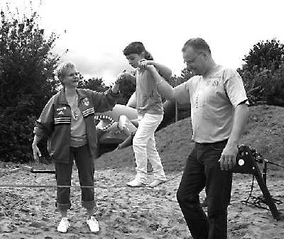 Så er der idræt for sjov om fredagen, det bliver styret af Gordon Erichsen og det drejer sig ganske enkelt om at have det sjovt et par timer. Her er både forældre og børn aktive sammen om forskellige aktiviteter. Og jeg skulle hilse at sige det både er sjovt og hyggeligt.